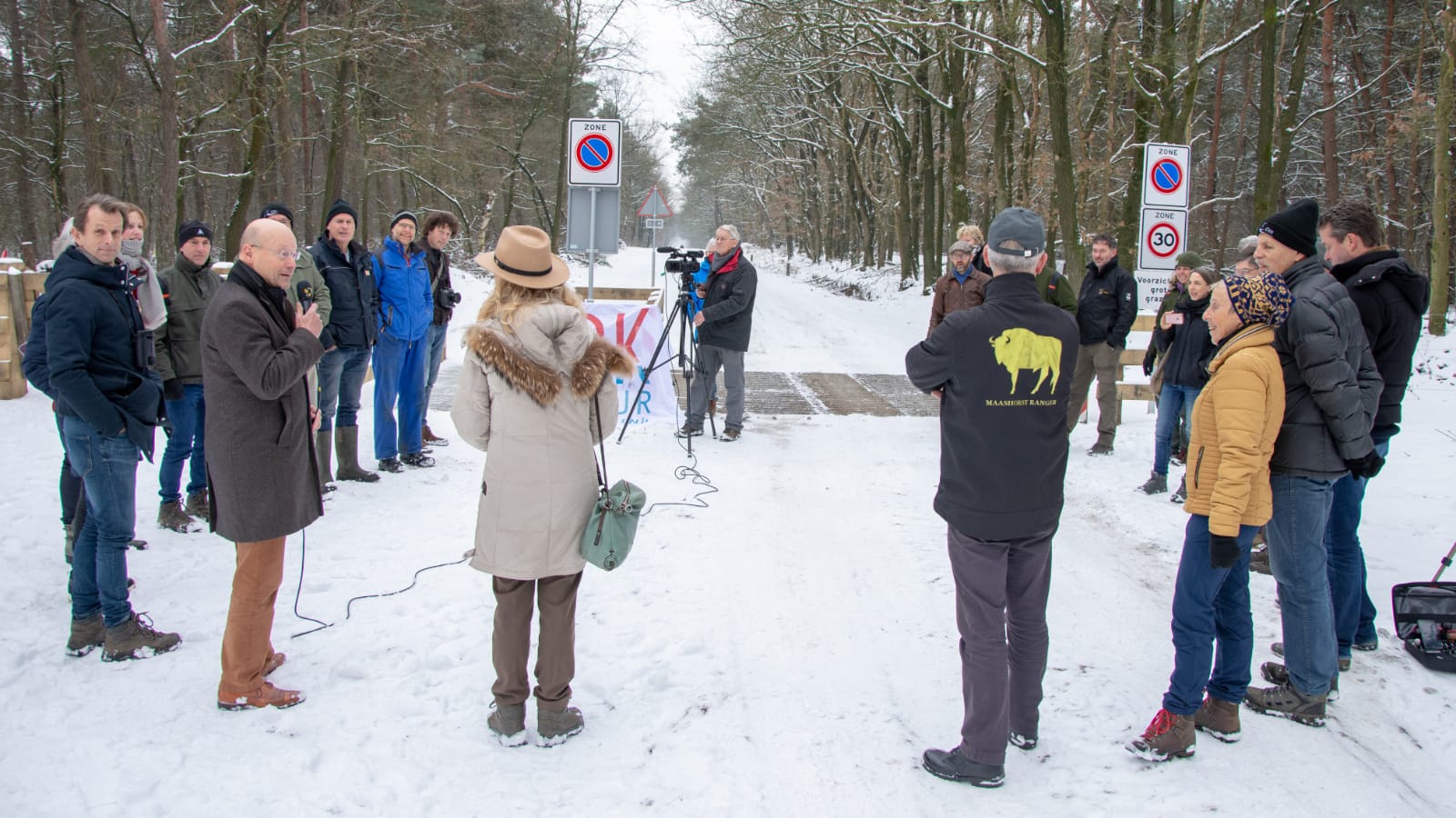 De onthulling van het nieuwe bord bij de oversteekplaats voor grote grazers door Hans Vereijken, wethouder van de gemeente Landerd, stond symbool voor de belangrijke verbinding die gemaakt is tussen de begrazingsgebieden in De Maashorst. Tot nu toe waren de kuddes Exmoor Pony’s en Taurossen van elkaar gescheiden door de Palmstraat in Schaijk. De begrazingsgebieden Kanonsberg/Munse Heide en de Brobbelbies/Slabroekse Bergen zijn voortaan door een oversteekplaats aan elkaar verbonden.