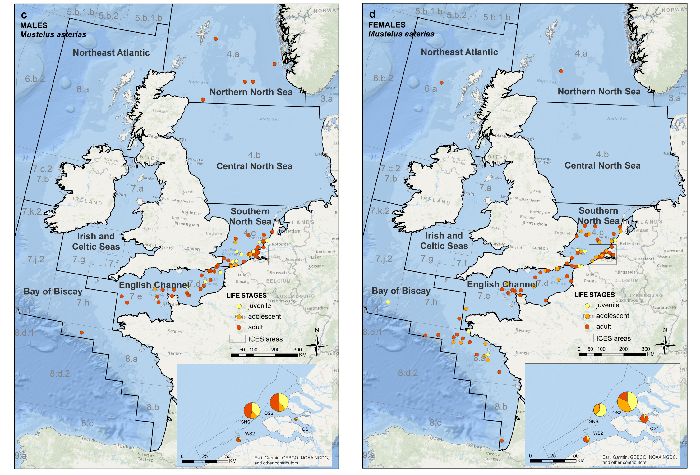 Tweehonderddertig keer werd er een gemerkte haai opnieuw gevangen en teruggemeld. “Hierdoor zijn we meer te weten gekomen over hun opvallende migratie,” zegt haaienonderzoeker Niels Brevé van Sportvisserij Nederland en de Universiteit Wageningen. “In de Voordelta zitten in het zomerhalfjaar mannetjes én vrouwtjes van alle maten maar in de Oosterschelde en in de monding van de Westerschelde vinden we bijna uitsluitend volwassen vrouwtjes. Waarschijnlijk foerageren ze langs de kust en zoeken de zwangere vrouwtjes vooral de Zeeuwse zeearmen op om jongen te krijgen.”