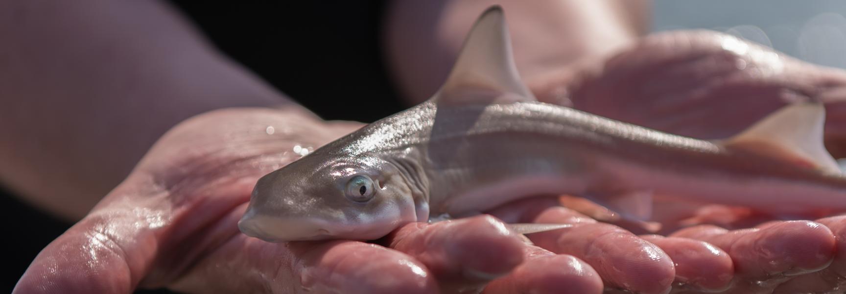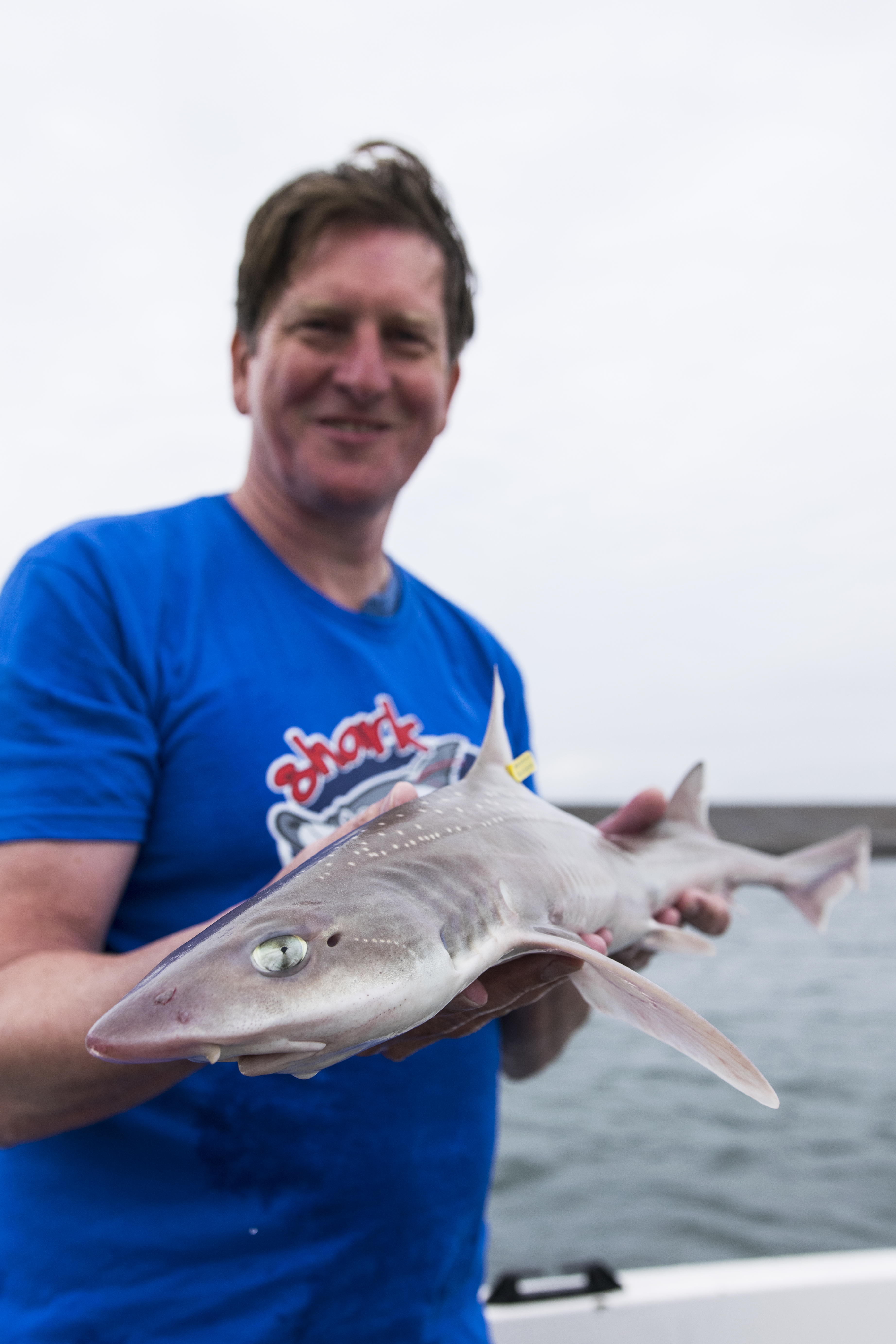 Een van de kleinere haaiensoorten die in Nederland voorkomt is de gevlekte gladde haai. Tien jaar geleden werd begonnen met een onderzoek met gemerkte haaien om meer te leren over het gedrag van deze soort. Zo’n 25 schippers van hengelsportcharters, garnalenvissers en een pulskorvisser hielpen tussen 2011 en 2018 om ruim vierduizend gevlekte gladde haaien van een merkje te voorzien: simpele gele plastic vin-labeltjes met een telefoonnummer en een website.
