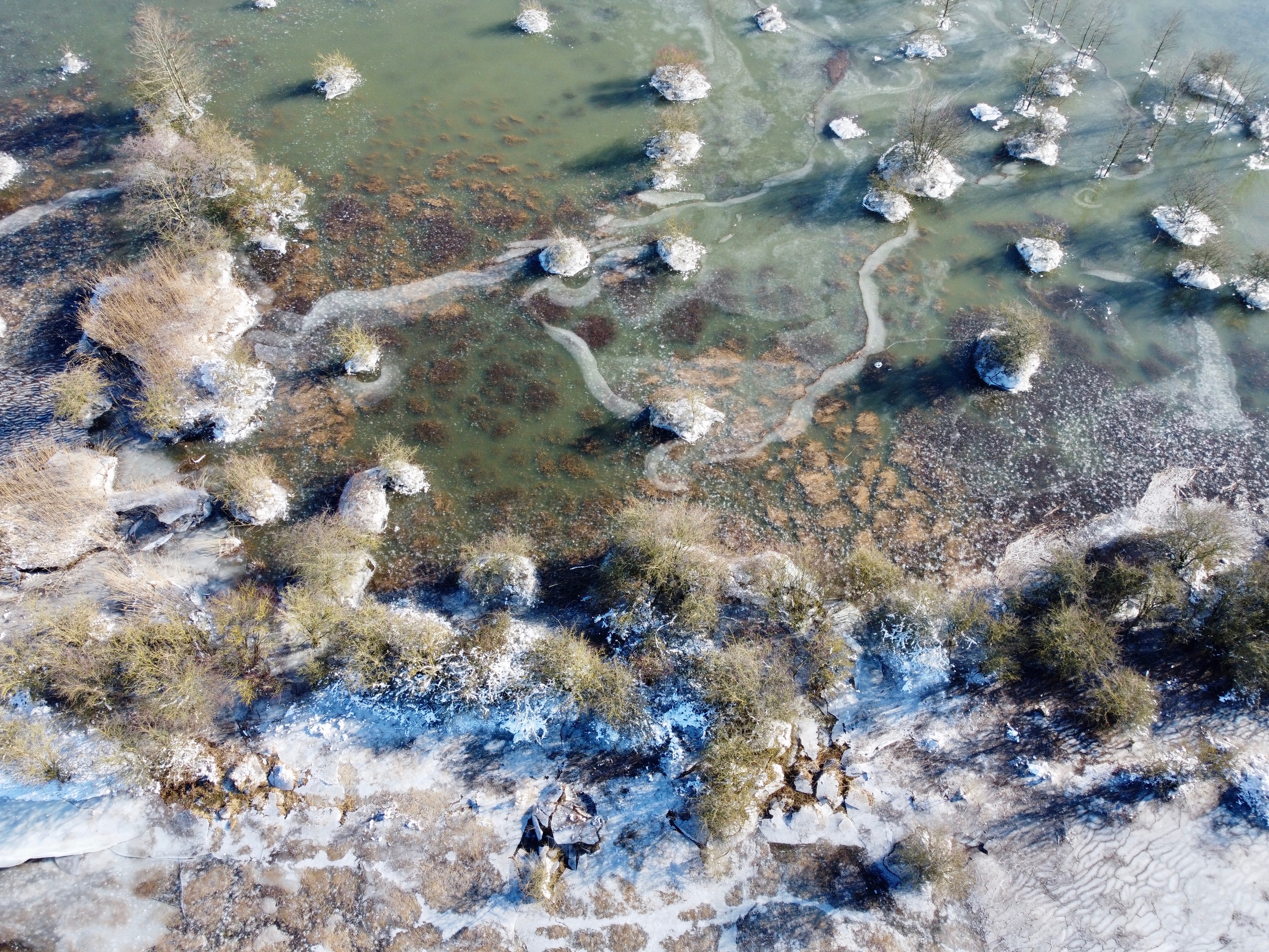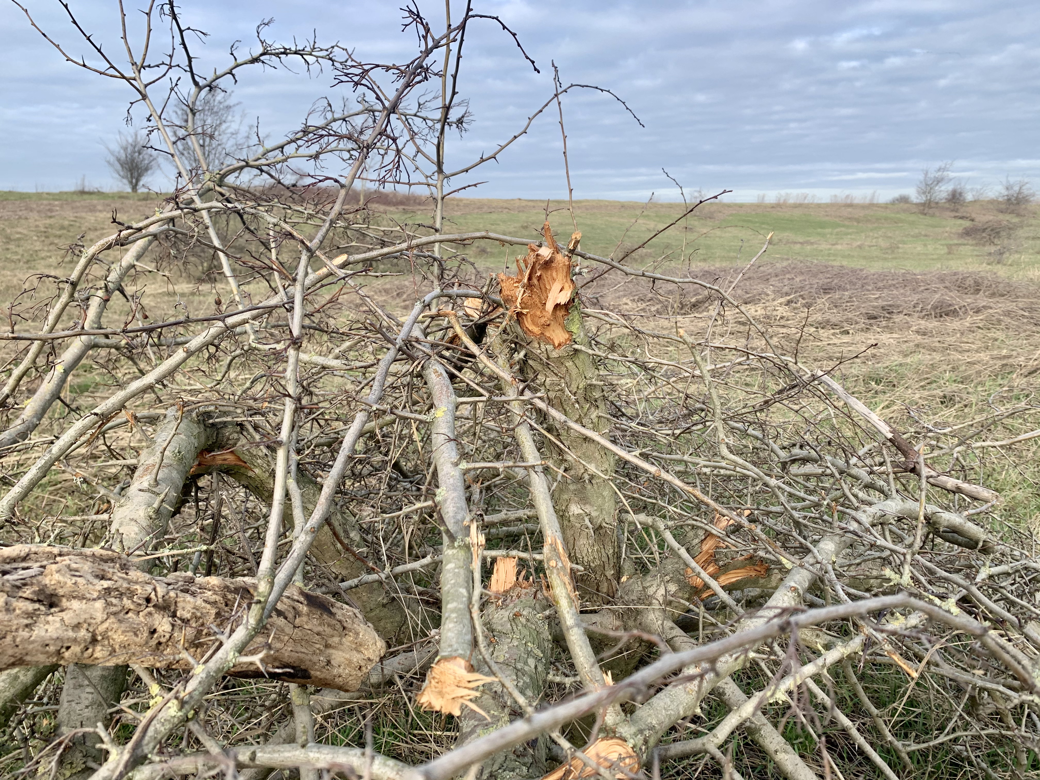 Geknakte takken en gevilde struiken zover het oog reikt. De combinatie van strenge vorst en dalend water in de rivieren zette half februari een bijzonder natuurlijk proces in gang. IJs als megasnoeimachine. Door het dalende water in de uiterwaarden tijdens de vorst hebben de gevormde ijsplaten hele takken van bomen getrokken en struiken in elkaar gedrukt. In één week is járen van struweelontwikkeling teniet gedaan.