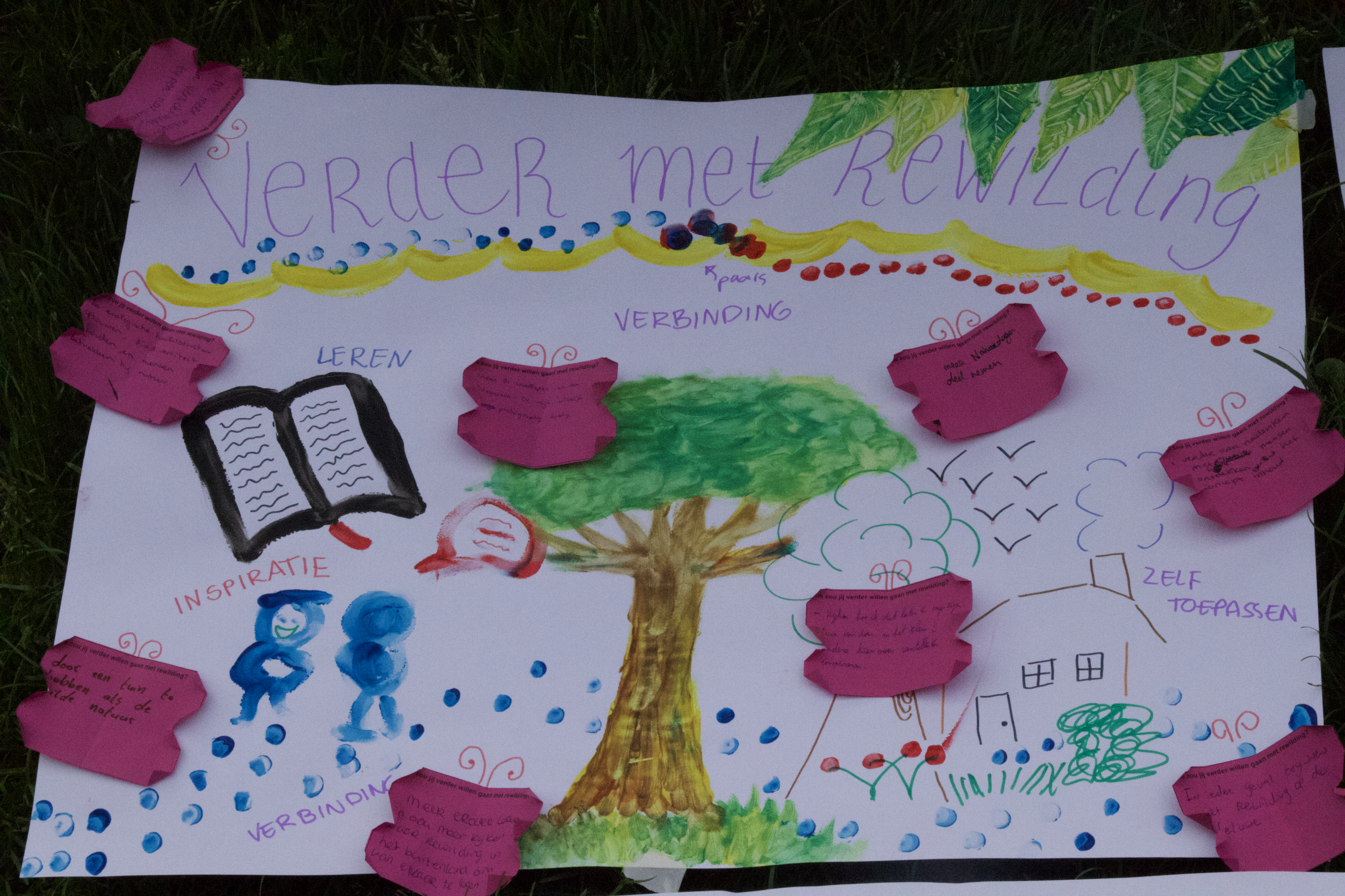 Ook deze dag werd afgesloten met een creatieve sessie op basis van vragenkaartjes. Met vingerverf deze keer. Het leverde weer mooie gesprekken op. Een greep uit de reacties: